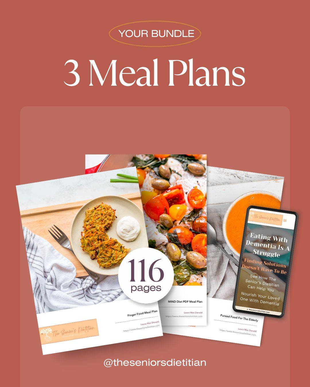 Each meal plan includes a portioned grocery list, 3 meals and 3 snacks per day, modifications and storage tips.